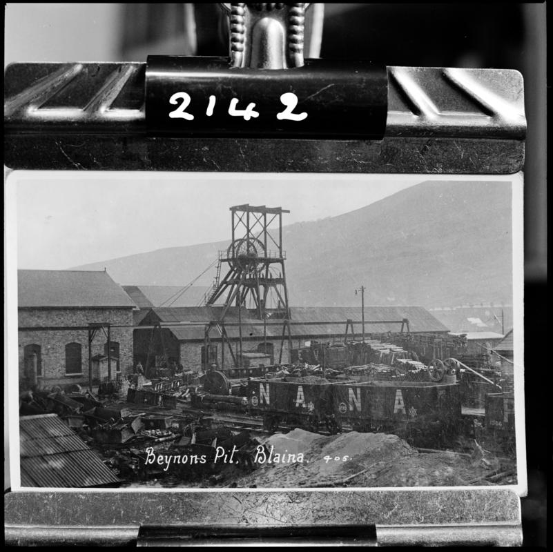 Black and white 35mm film negative showing Prince of Wales Victoria Colliery, 1975. 'Prince of Wales Victoria 1975' is transcribed from original negative bag.