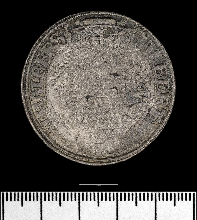 This coin is part of a collection of coins and artefacts associated with the Ann Francis shipwreck (1583)
