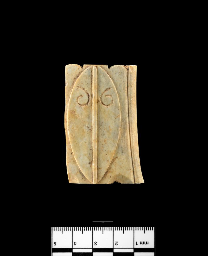 About half of a front plate. There is no sign of any decoration and it may well be an unfinished, possibly failed, piece.