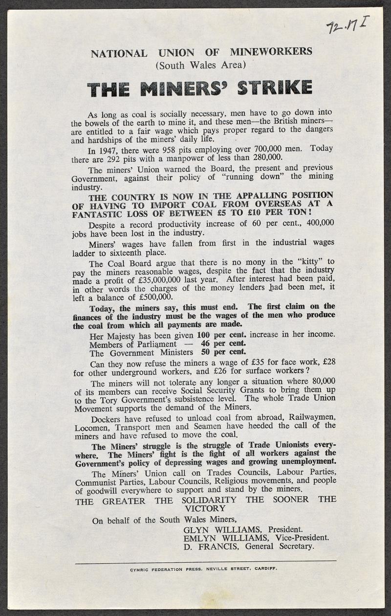 Associated Person/Body: National Union of Mineworkers (South Wales Area)