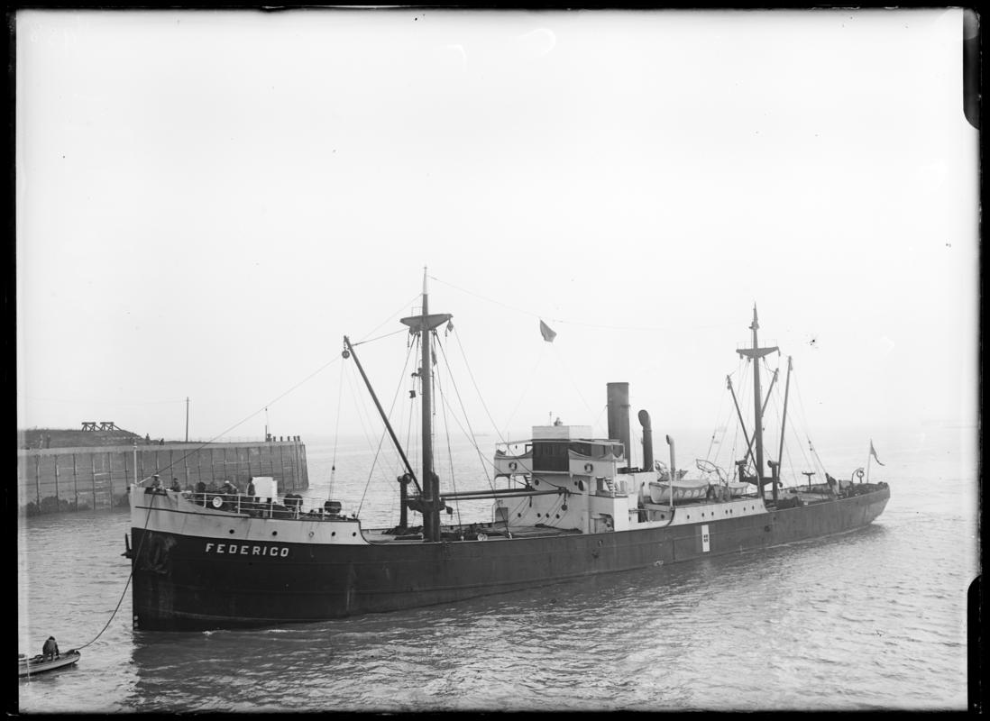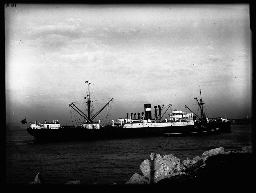 Port Broadside view of S.S. ANNA and tug WARDLEYS, c.1936.