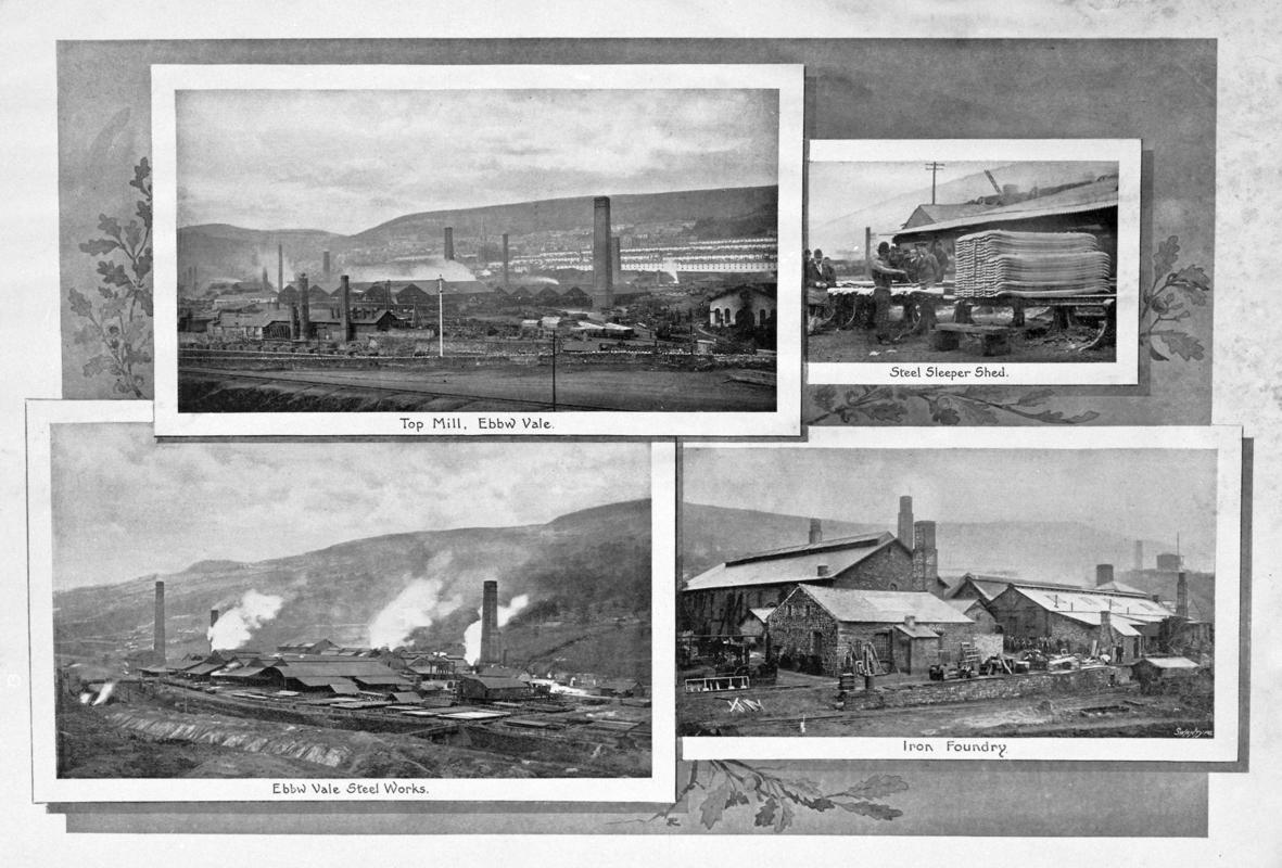 General view looking over Ebbw Vale and the steelworks. Handwritten message on reverse with half penny stamp postmarked Ebbw Vale, 13 September 1904.