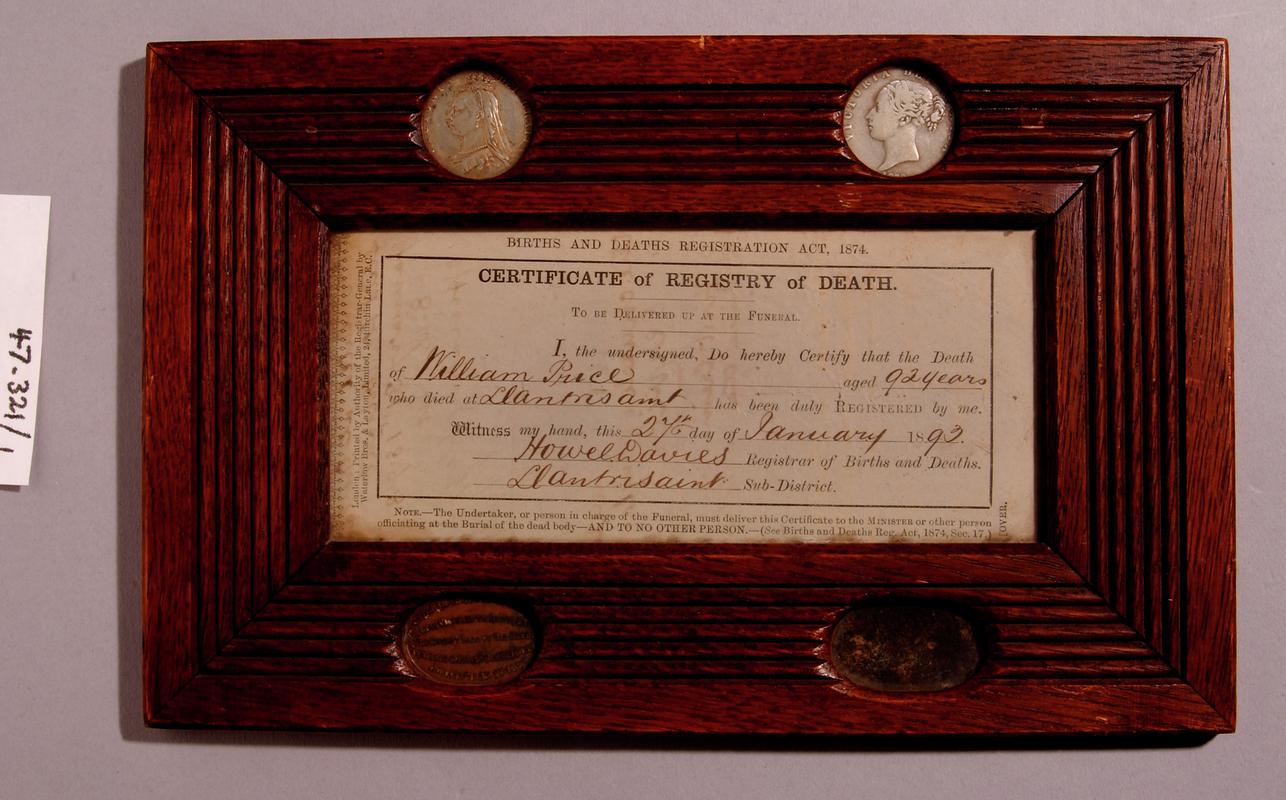 Seal of Daniel Evans (Daniel Ddu) on envelope with 2 impressions of seals of "Royal George"