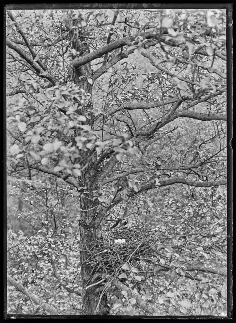 Young Sparrowhawks (Accipiter nisus) in nest near the reservoir in Woods Covert, Cardiff. Photographed 8 July, 1912.