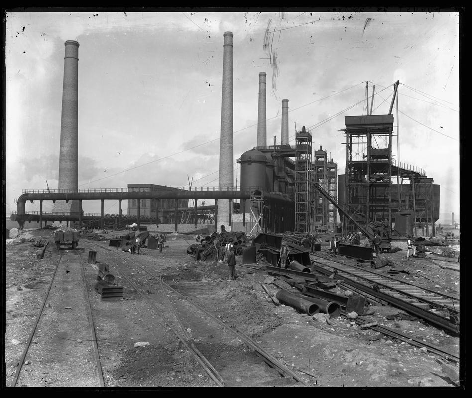 Construction of Barry No. 1 Dock nearing completion. Mounted on card.