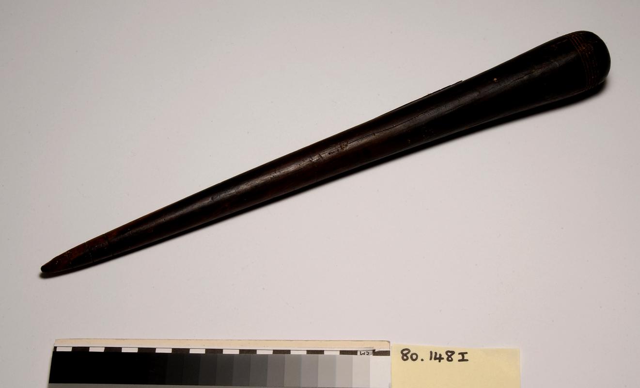 Wooden fid. Originally held in canvas kit bag (2009.22/1) with collection of splicing tools (2009.22/2-15).