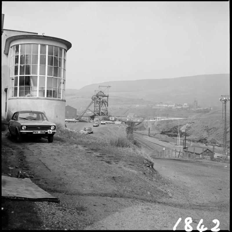 Black and white film negative showing the Markham steam engine, Blaenant Colliery.