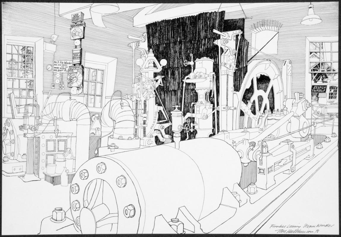 Hutchinson, Tom (Born 1933. From Tom Hutchinson "Most of my work is based on the industrial landscape of South Wales." "Educated at Pontypridd Grammar School and Cardiff College of Art where I studied illustration. Taught in Herefordshire for two years, Nantymoel Sec. School five years and Bridgend Boys Grammar School later Brynteg Comp. School until I retired.")