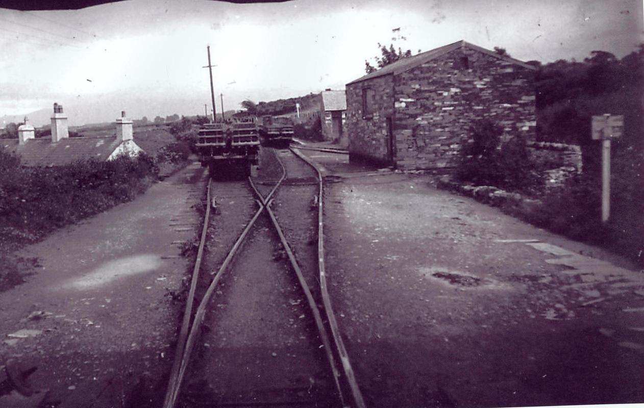 View of a slate fence. Location unknow, but possibly Cwmorthin. Mounted on black and grey card.