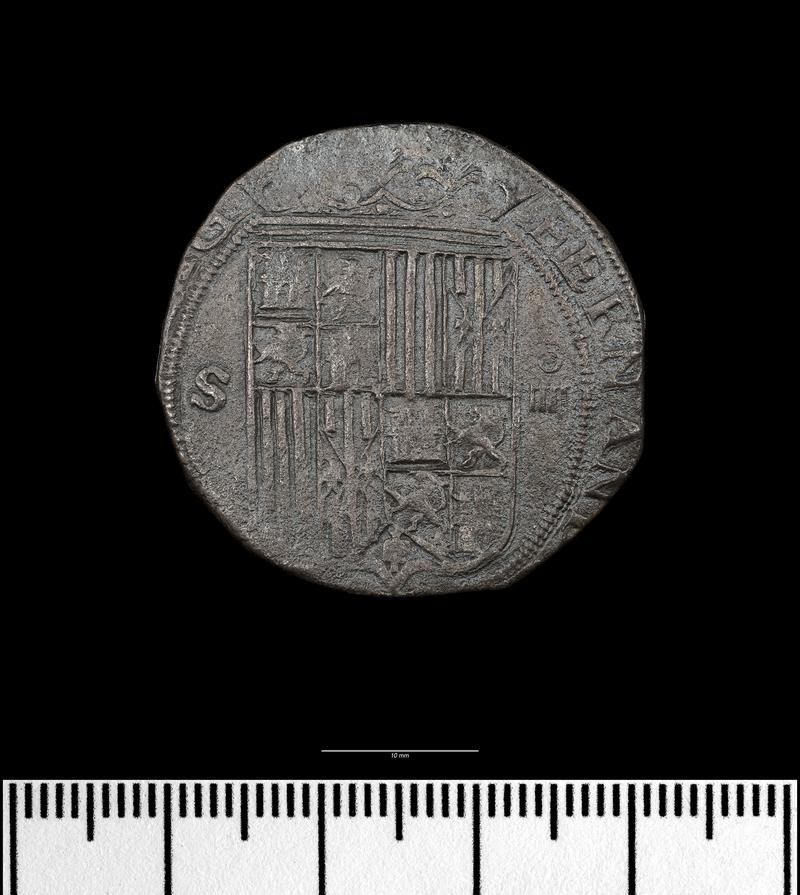 This coin is part of a collection of coins and artefacts associated with the Ann Francis shipwreck (1583).