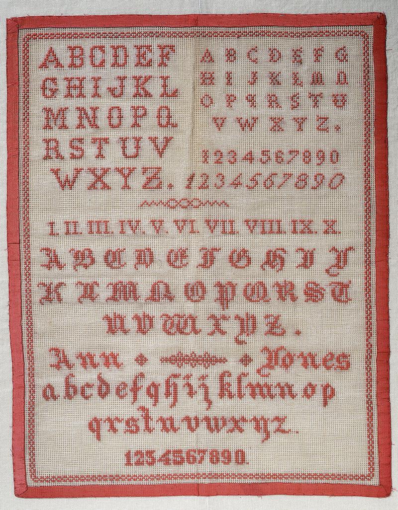 unfinished embroidered cushion cover; cotton with embroidery transfer in process of completion.