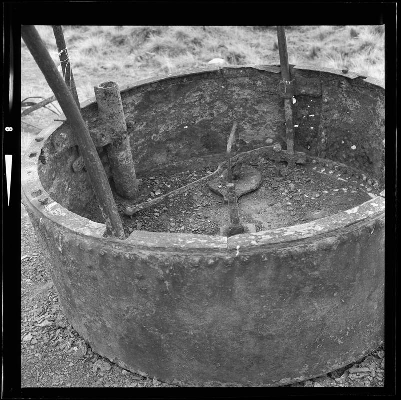 Contact sheet of 28 images showing general views of Bargoed Colliery, the washery, interior of blacksmith's shop, downcast shaft pit bank and winder driver's cabin, 1970s.