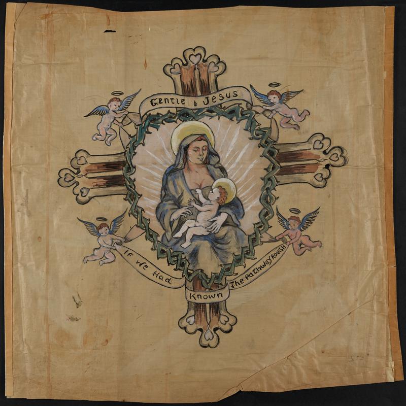 Oil painting showing a mill, waterfall and mountain at Bodhyfryd.
