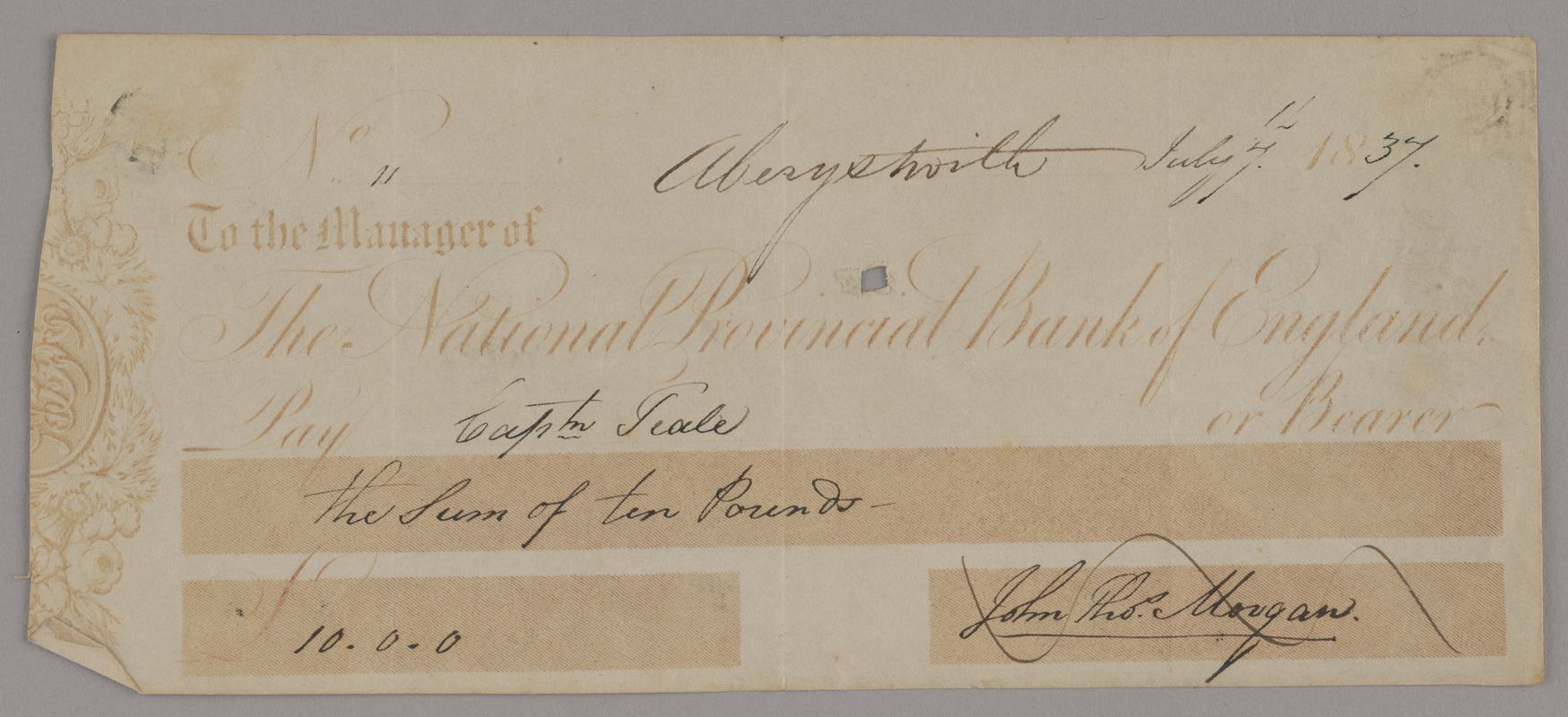 National Provincial Bank, cheque