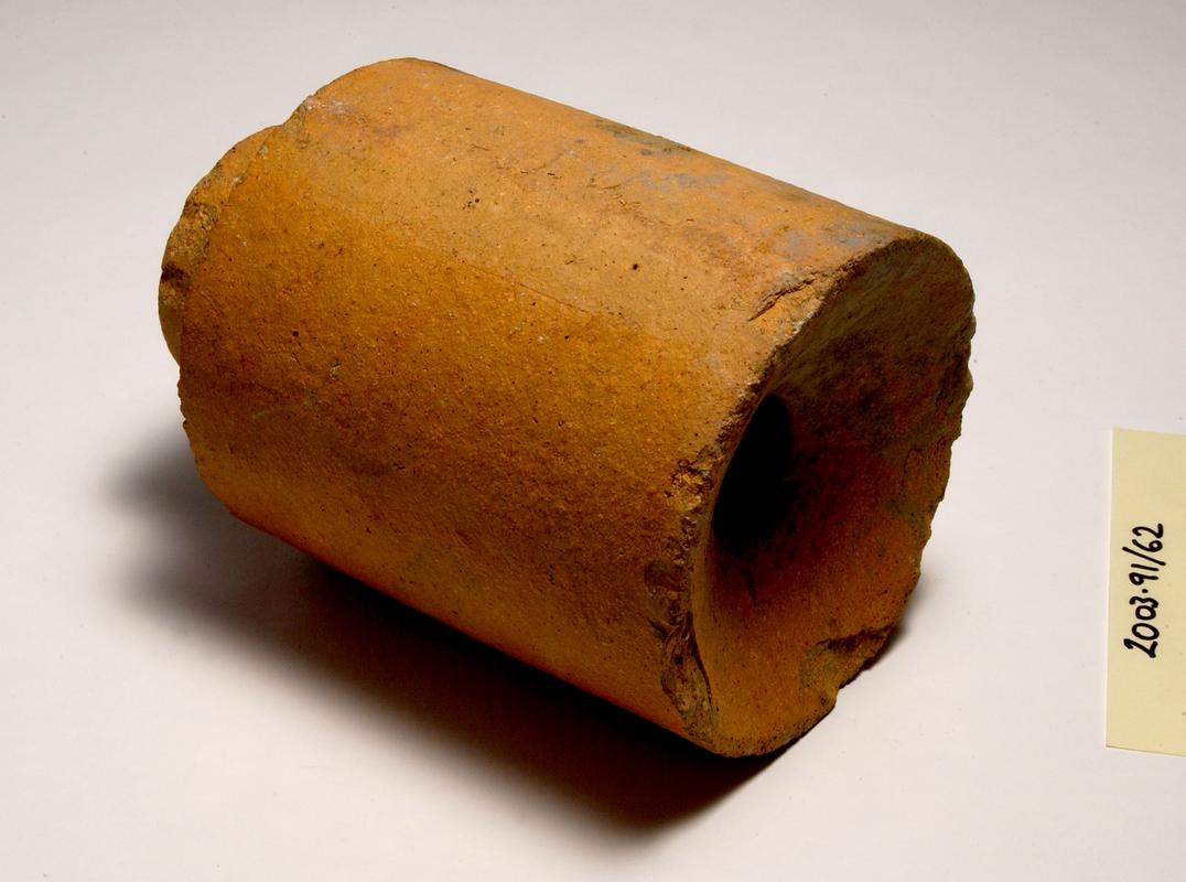Circular disc, no rim, hole punched centre top, number stamped centre/left, reverse has damaged stamped square with three rows of small stamped letters within it centre/bottom