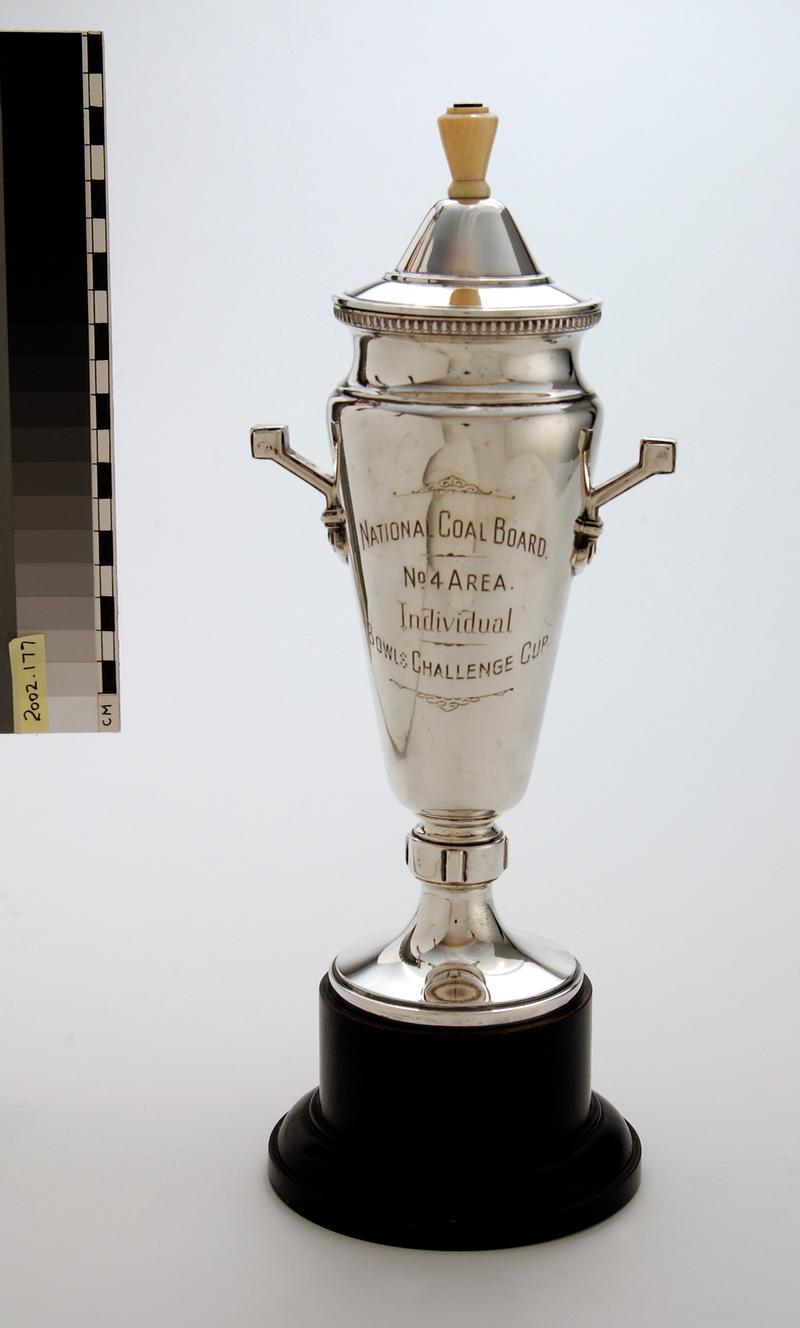 National Coal Board Sports & Social Club Snooker cup, 1968 Silver plated cup with handle either side, on bakelite base.