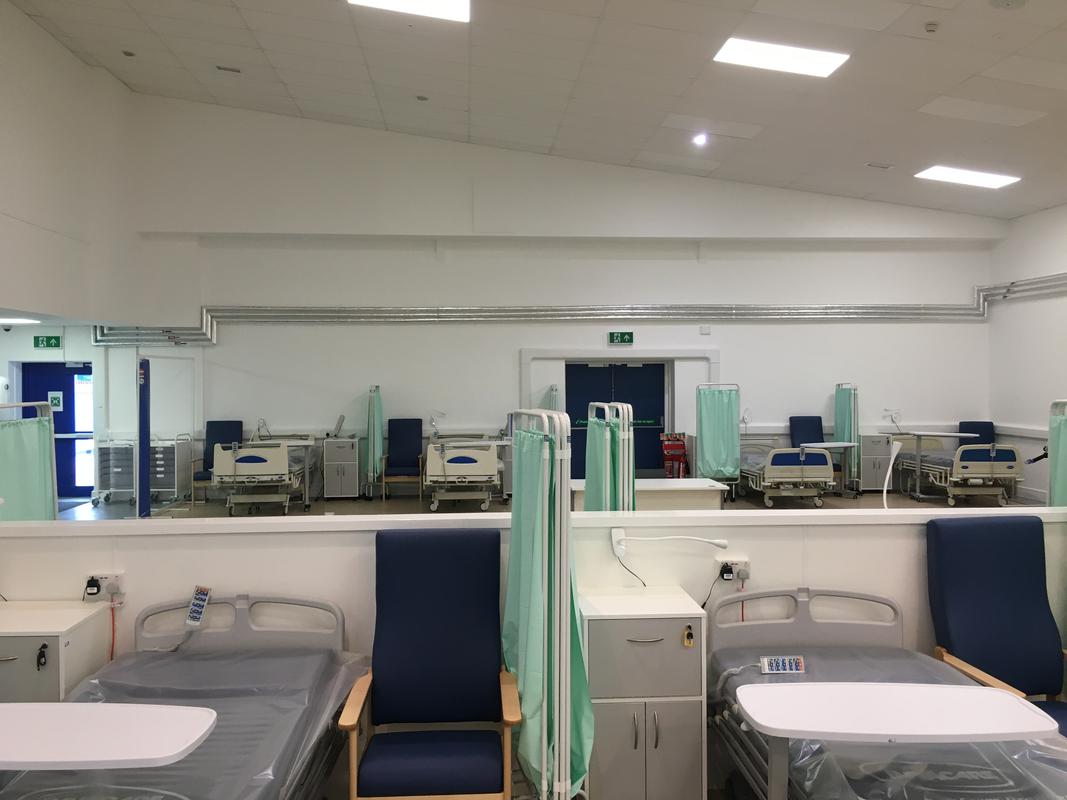 Ward at Hywel Dda University Health Board field hospital, Carmarthen.