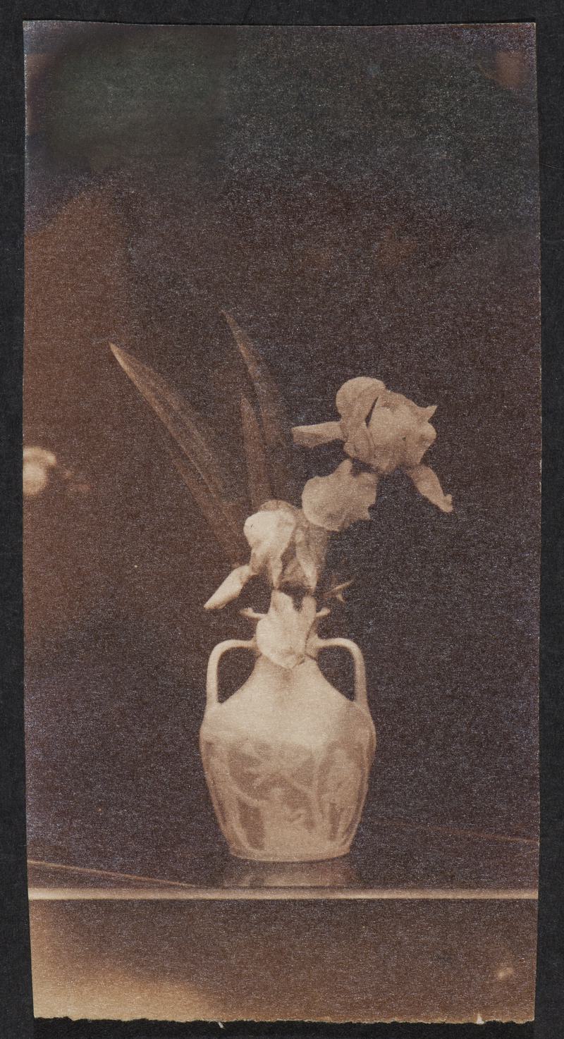 Salted paper prints. Pair of photographs for use in a stereoscope. View of a garden path with chair and a basket.