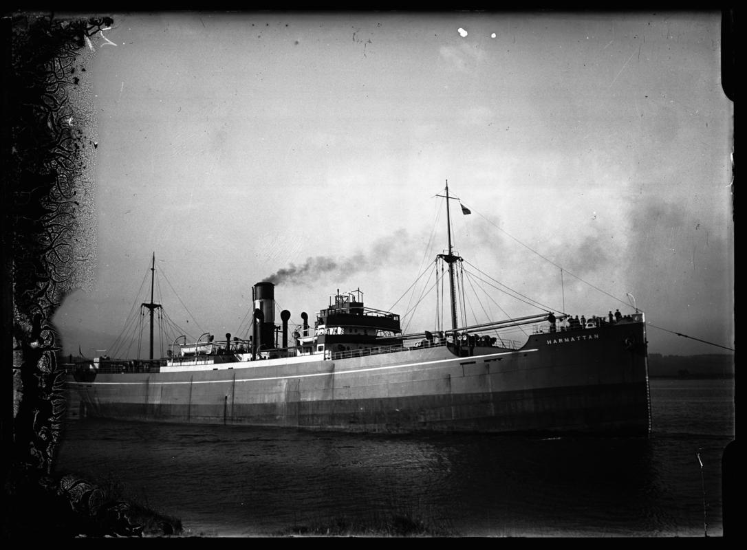 The ship is shown returning from Murmansk in 1935. Signed bottom right. Undated. Framed.