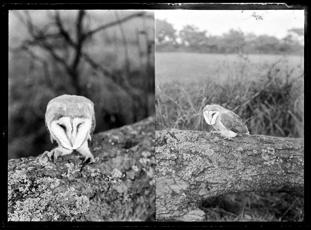 Raven at nest, glass negative