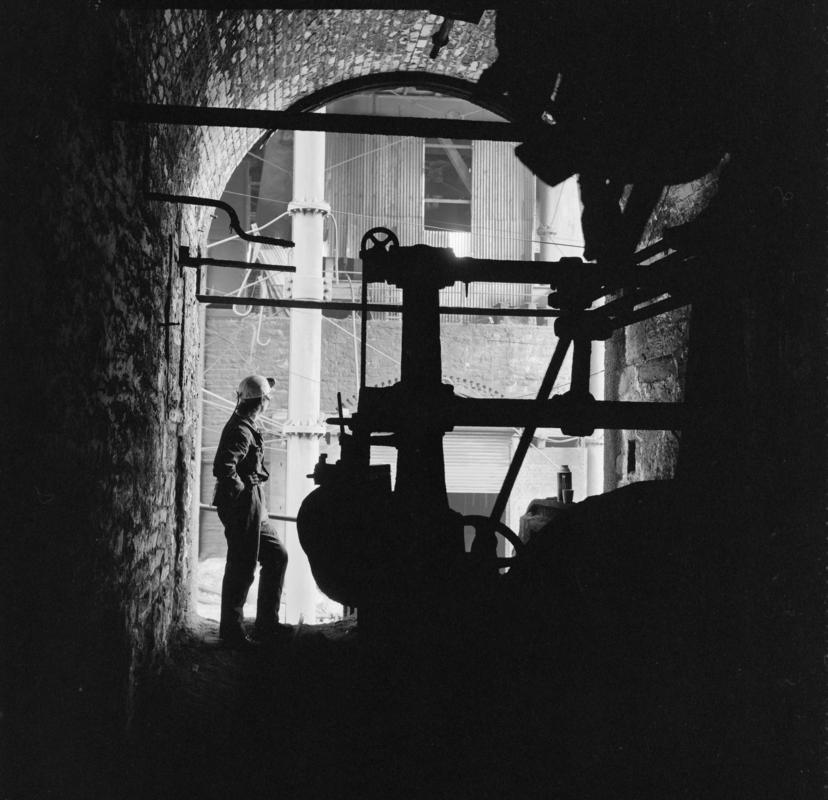 Black and white film negative showing an underground roadway, Morlais Colliery.