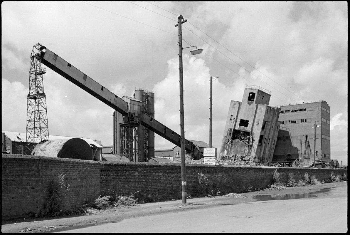 Colour photograph of Landore works blast furnace charging bank being demolished, 31 October 1990.