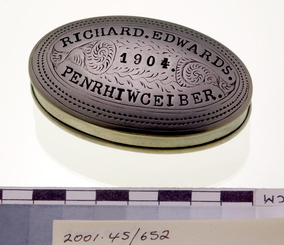 Big Pit National Coal Museum : Pit Head Baths Gallery (DC 1.01 twist boxes front top shelf)