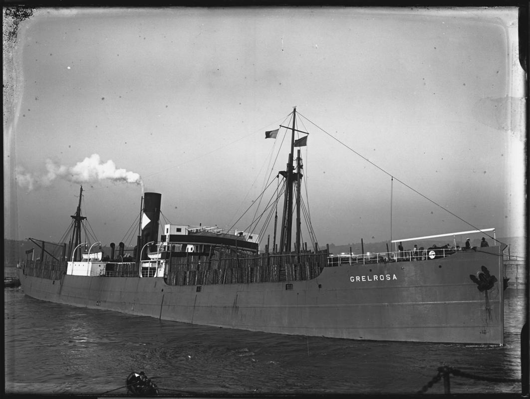 View of the S.S. GRELROSA in rough sea. Signed bottom right. Undated. Framed.