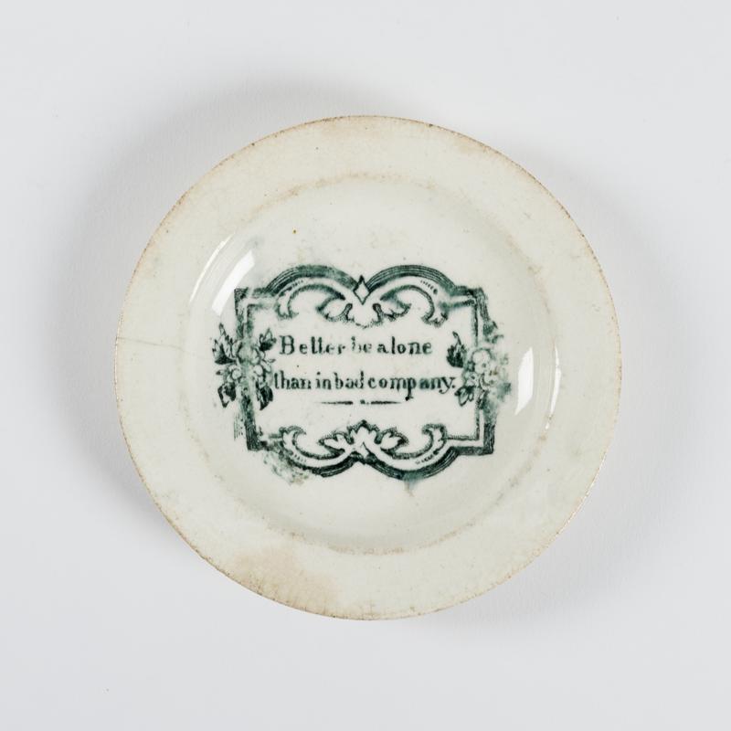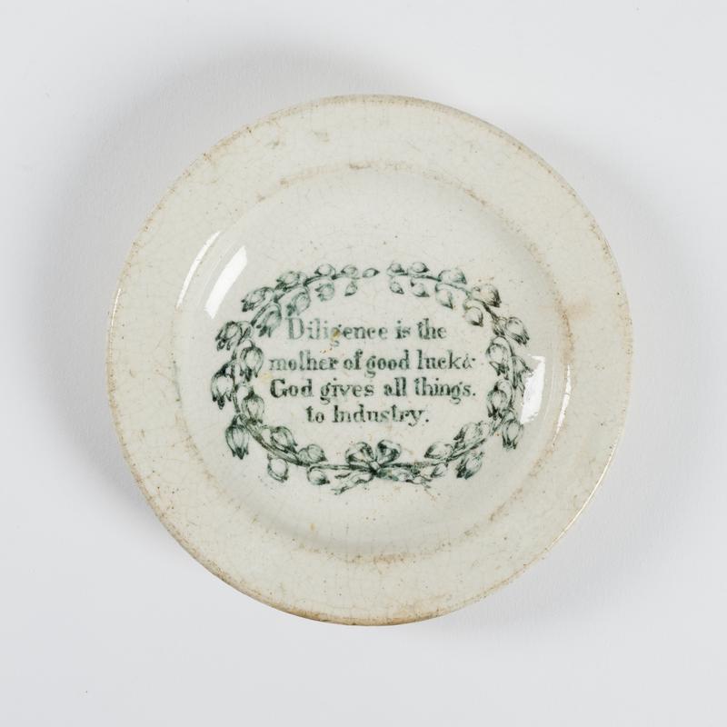 one of three child's plates with moulded decoration to borders & painted design in pink lustre of abstract cottages in landscapes; of a type associated with Swansea (although these mouldings do not correspond to a known type); one octagonal