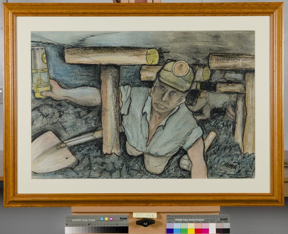Watercolour showing Goytre Wharf in about 1850. Artists signature and date '97' handwritten in ink bottom right, and handwritten in pencil on mount. In card mount.