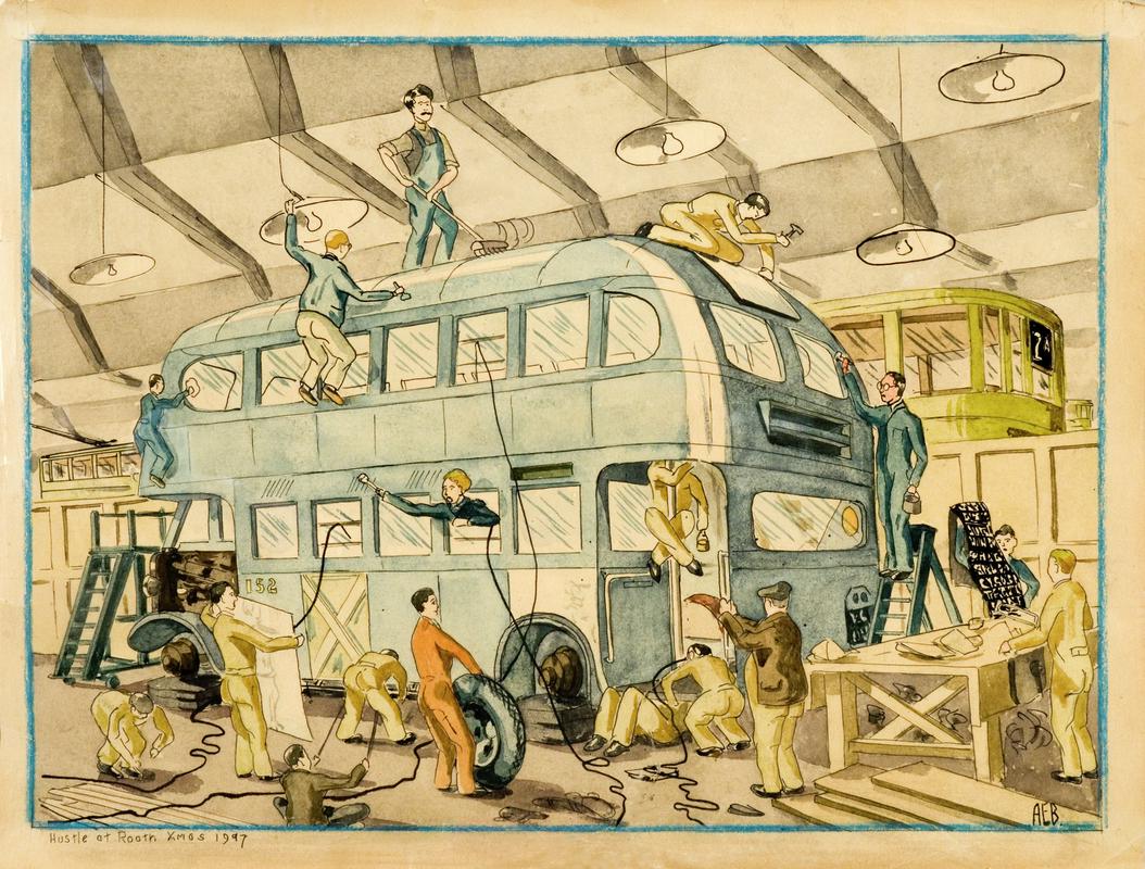 Pencil drawing showing head and shoulders portrait of Glyn Pleece, a miner guide at Big Pit: National Coal Museum. Unsigned and undated.