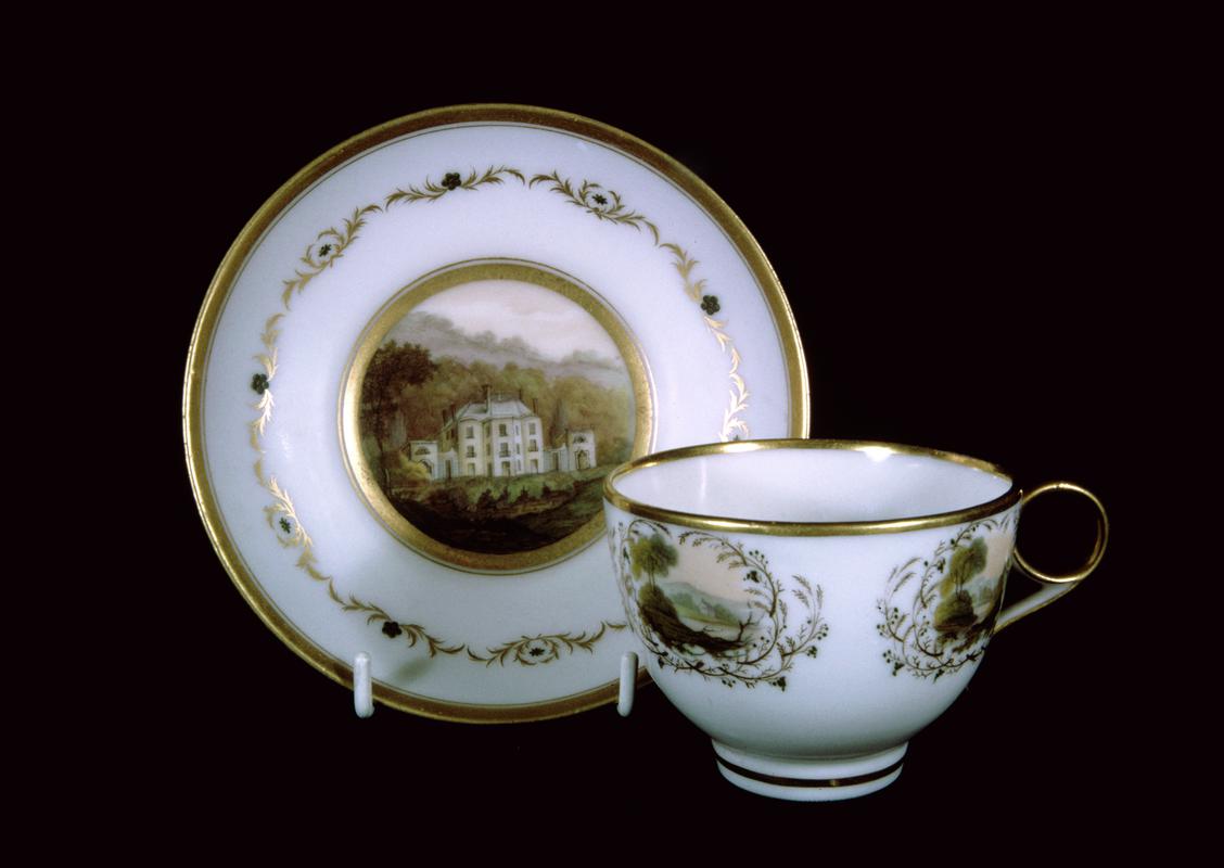 Dessert dish, oval, clear white translucency, lustrous glaze, standing on a shallow ffot, the rim moulded in six large and six small lobes and with the standard 'Nantgarw' moulding of C-scrolls, ribbon-tied foliage wreaths and florets. The centre painted in rather pale enamels with a strawberry plant, a pink rose and other flowers, and the border with six sprays of flowers and fruit, deckel-edged gilt rim line.