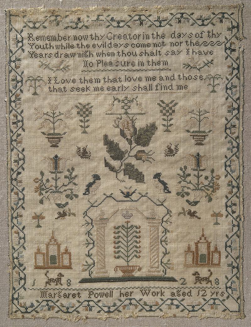 Square table cloth with embroidered signatures. Inscribed: 'Eisteddfod Gendlaethol Frenhinol Cymru 1957 Llancefni, Sir Fon'.