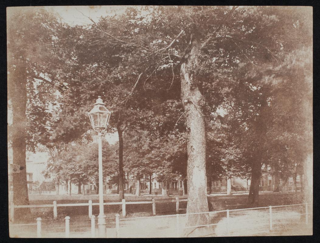 Mounted salted paper print. Interior view of the cloisters at Bristol Cathedral.