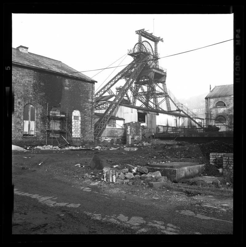 Black and white film negative showing the coal face, Deep Navigation Colliery.