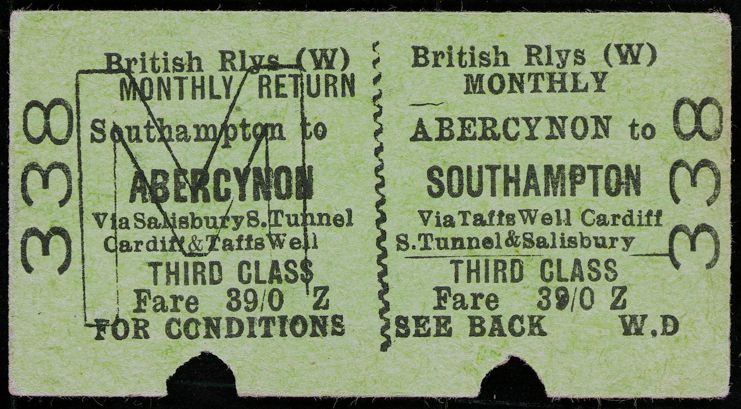 Black print on cream card with two red 'P's and an 'M' stamped on ticket. British Railways Board ticket (2nd class privilege return) - Garth to Llangammarch Wells. Ticket number 1096.