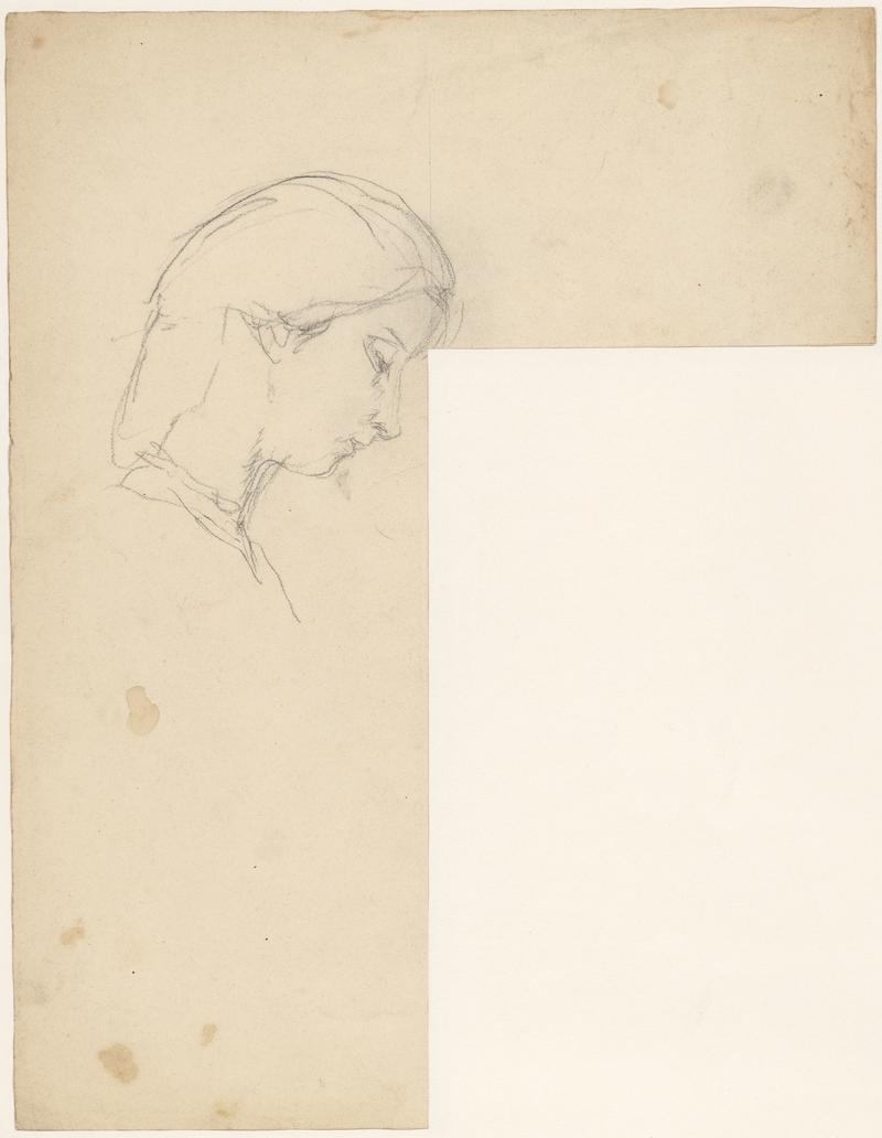 Gwen John met the sculptor Auguste Rodin (1840-1917) in 1904. Rodin was France’s most legendary artistic figure and was at the height of his career. John modelled for him and they began a passionate love affair. She also became his protégée. This carefully executed study of Rodin probably derives from one of the photographs Rodin gave her that she kept in her room.