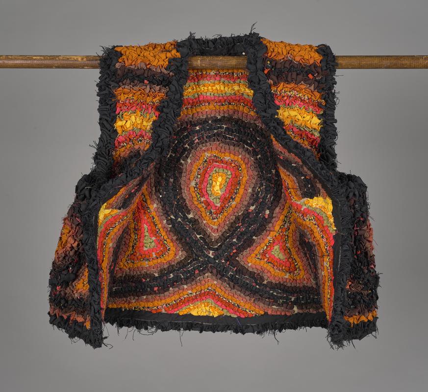 woollen bed rug, natural cream background, twill weave with raised tufts of wool inserted in weft at regular intervals, of which some are navy and mid-blue, forming single and double triangular patterns, with twilled and fringed edges; the date 1830 also recorded in navy tufts near edge.