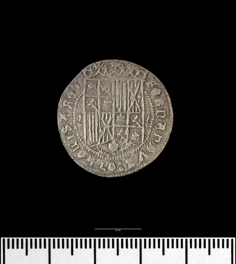 This coin is part of a collection of coins and artefacts associated with the Ann Francis shipwreck (1583).