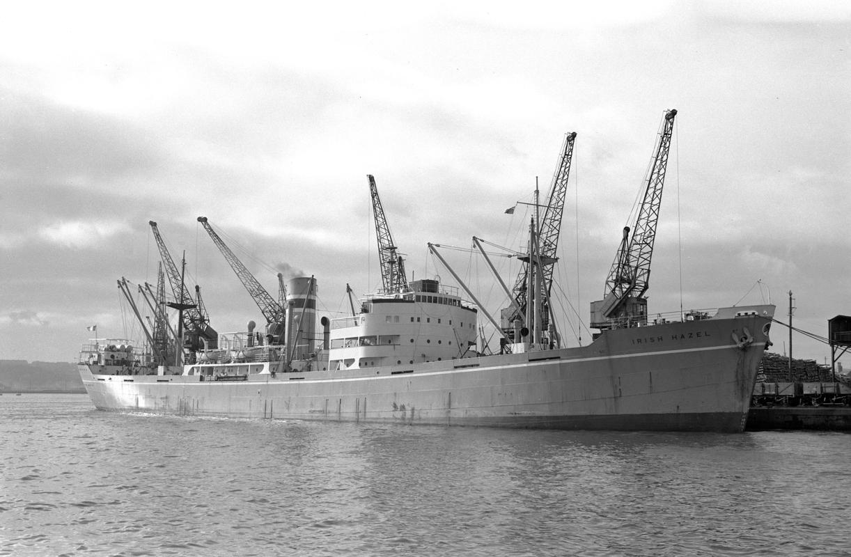 Starboard bow view of S.S. HAMINELLA at Cardiff Docks.