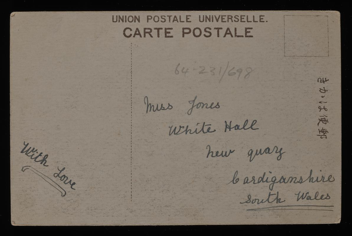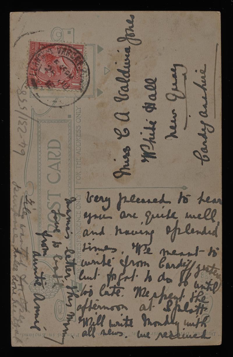 Colour postcard of "London, Regent Circus" (Artist Impression). Sent to Mrs D. Thomas of Glanllyn. Postmarked 01 August 1906.