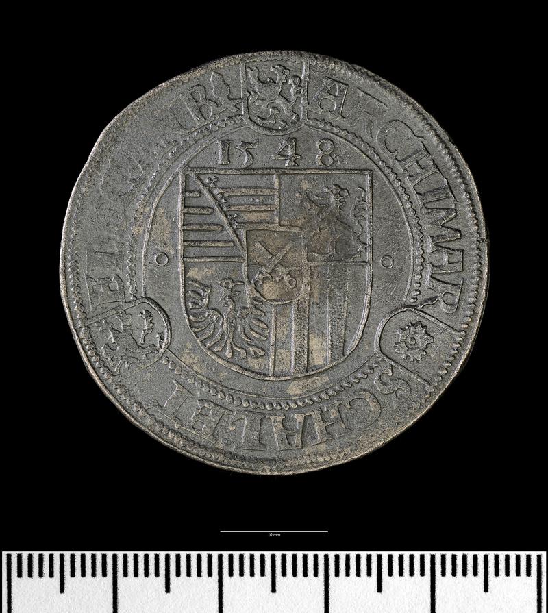 This coin is part of a collection of coins and artefacts associated with the Ann Francis shipwreck (1583)