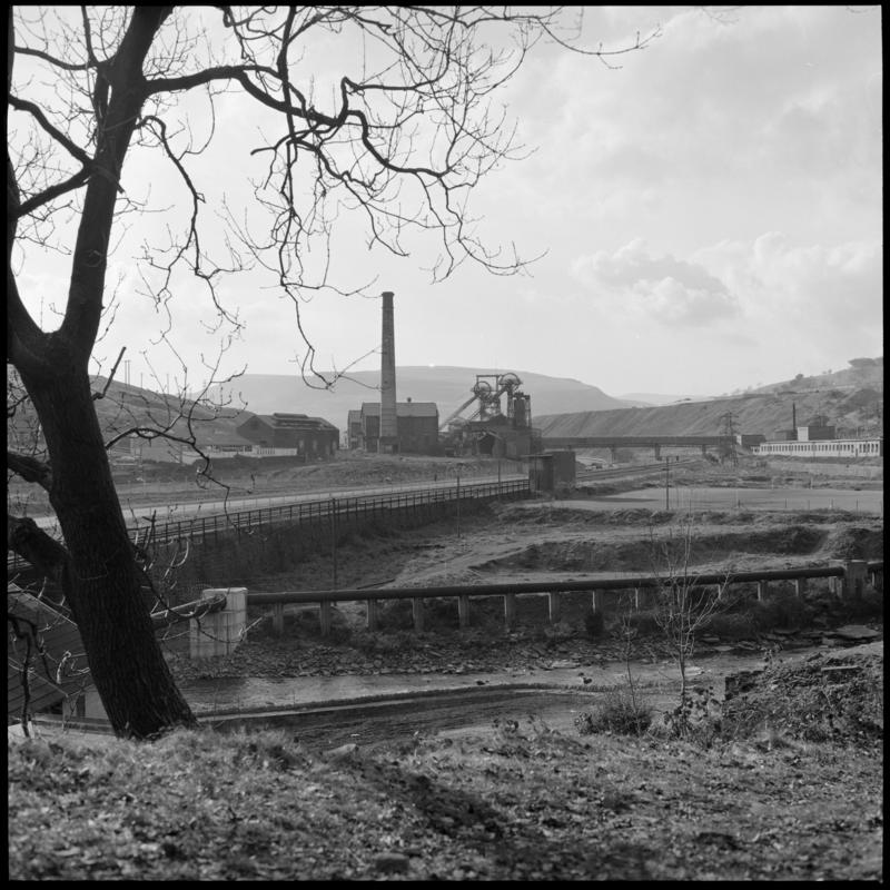 Black and white film negative showing a surface view of Deep Duffryn Colliery. 'Deep Duffryn' is transcribed from original negative bag.