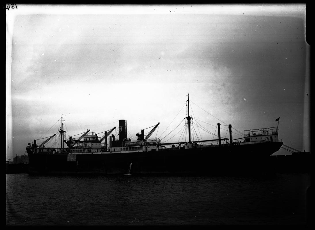 3/4 starboard bow view of S.S. GRELROSA, about 1936.