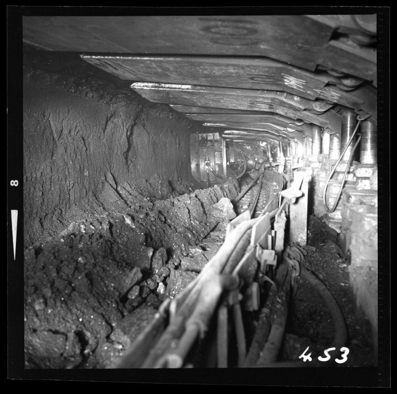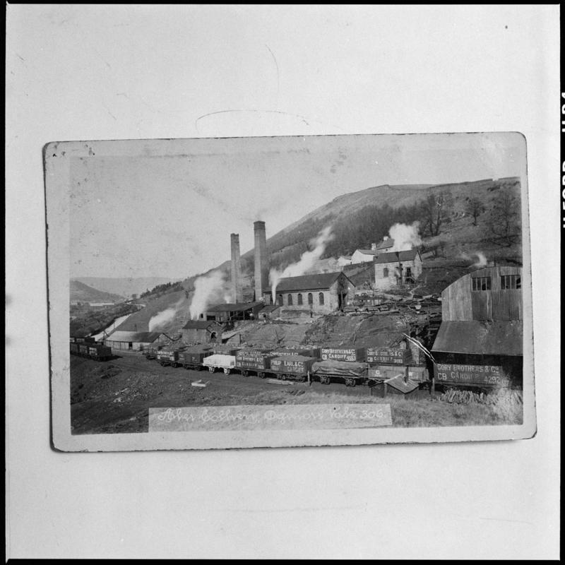 Miners holding a N.U.M. Merthyr Vale Lodge banner, Merthyr Vale Colliery.
