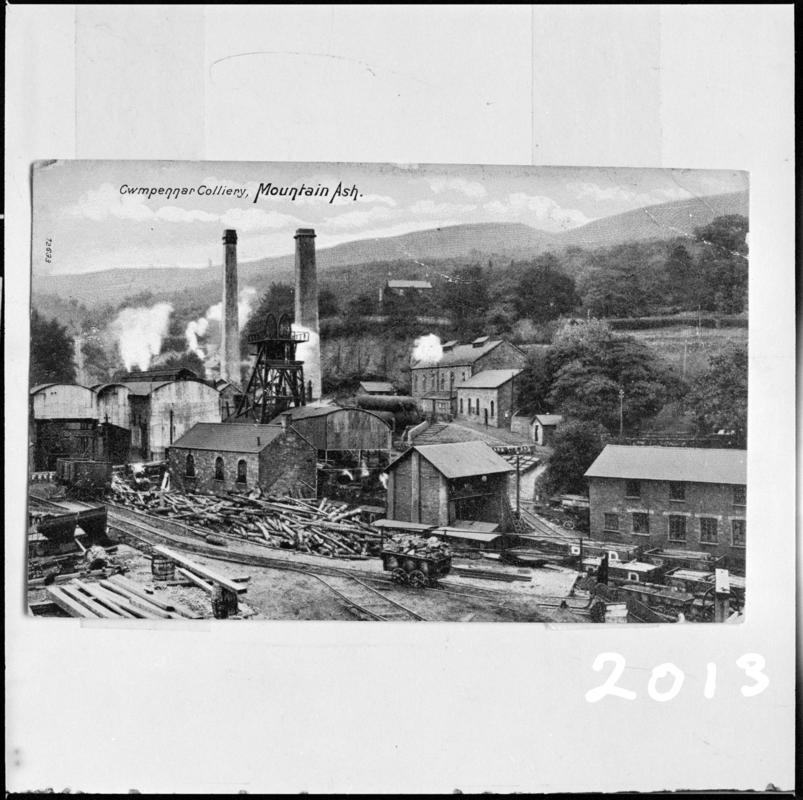 Black and white film negative showing a cast iron beam of a Cornish pumping engine, made by Harvey of Hayle in 1858, situated half way down the No. 2 shaft, Penrhiwceibr Colliery. 'Penrikyber' is transcribed from original negative bag.