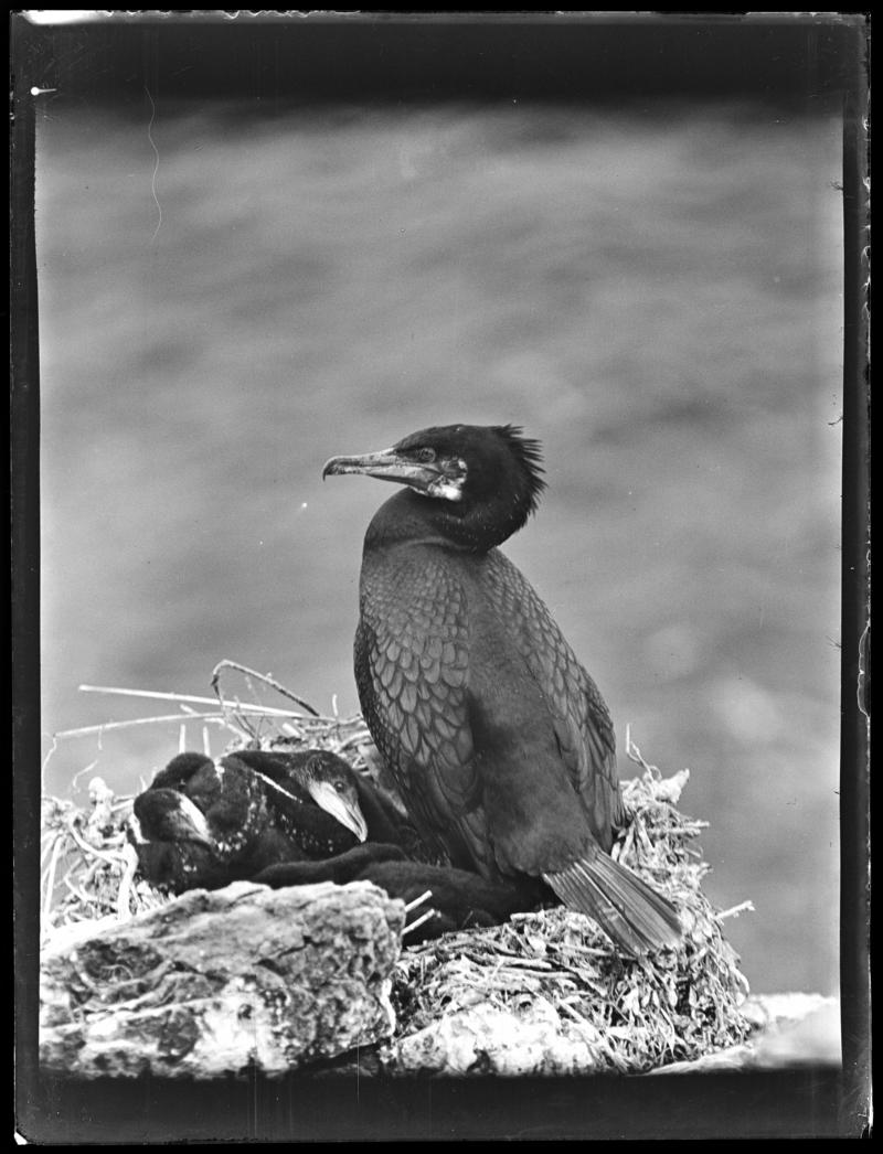 A Coot (Fulica atra) on nest, in Ddewr Pools, Radnorshire. Photographed 13 May, 1956.