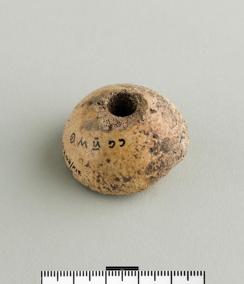 Stone spindle whorl from Dinorben Hillfort, north-west Wales. 300 BCE-400 CE. The same technology was used to spin wool for thousands of years.