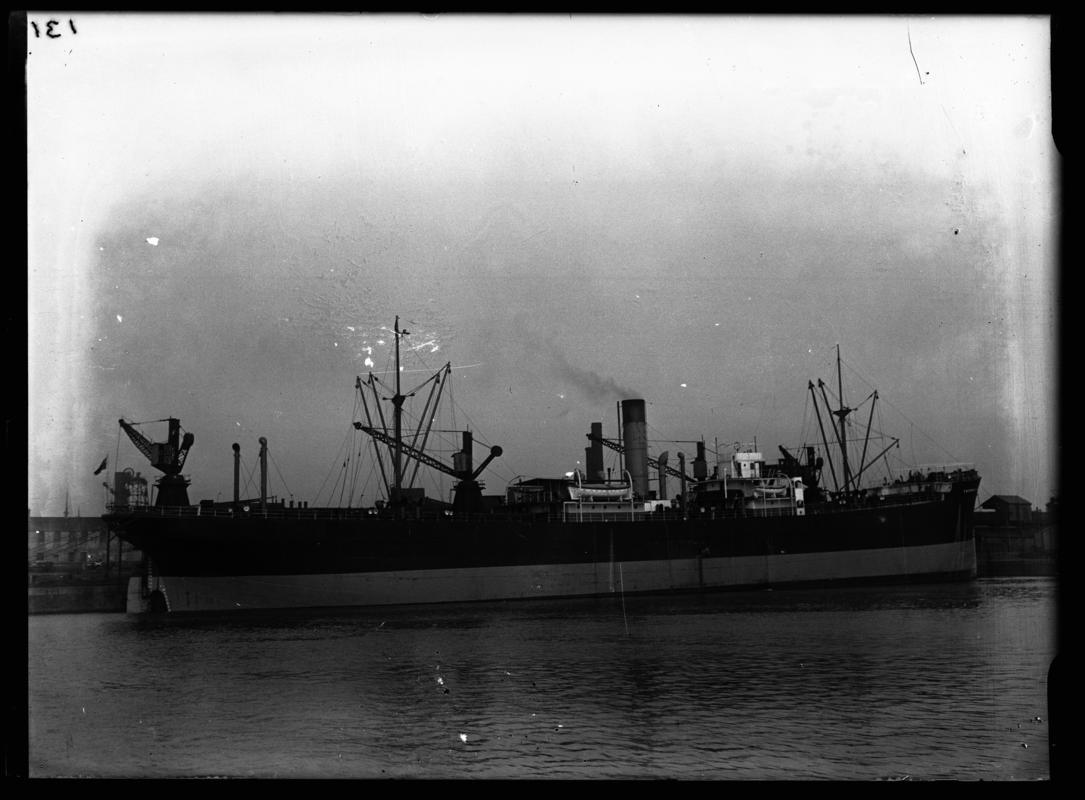 ¾ Starboard stern view of H.M.S. ARMADA entering Cardiff Docks.