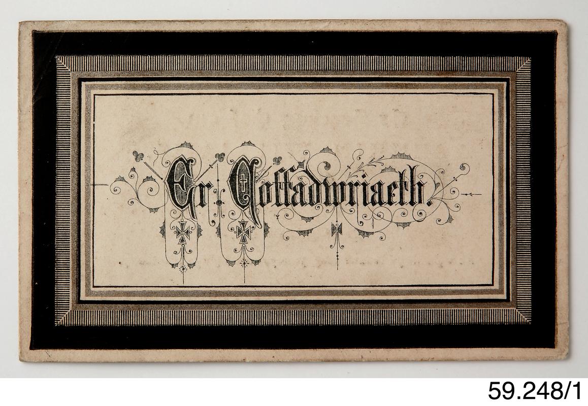 Funeral card for David Phillips (Dafi) (1875- March 20,1949). Funeral held at Hermon Baptist Chapel, March 24, 1949.